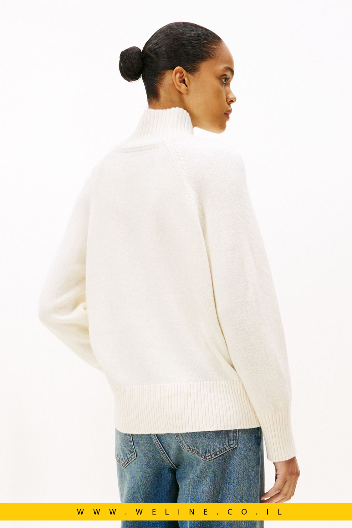 Tommy Hilfiger Wool Sweater Women, TH Crest Jumper, Mock Neck Ivory Petal, סוודר צמר נשים, WW0WW46434.