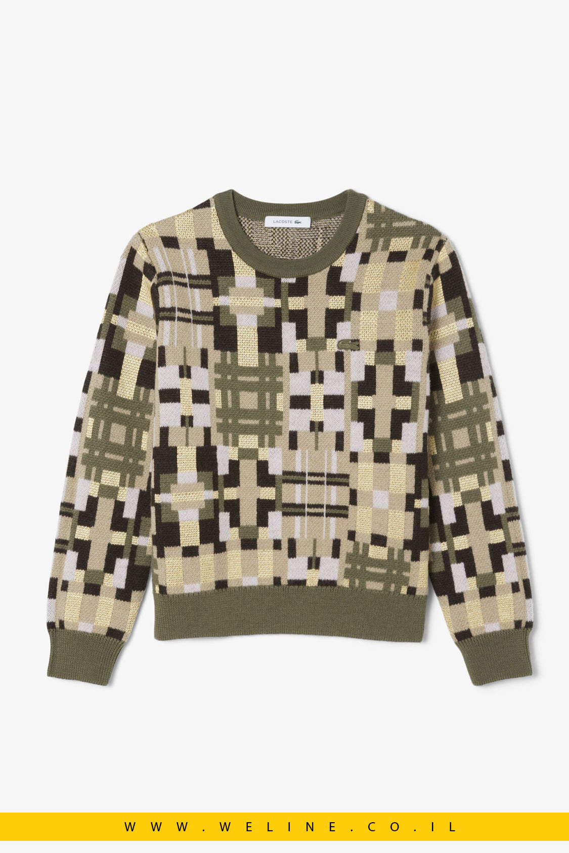 סוודר Lacoste • סוודר צמר ג’קארד • סוודר גרפי לגברים • סוודר חורפי יוקרתי • Lacoste Wool Sweater • סוודר צווארון עגול • Lacoste Jacquard Knit