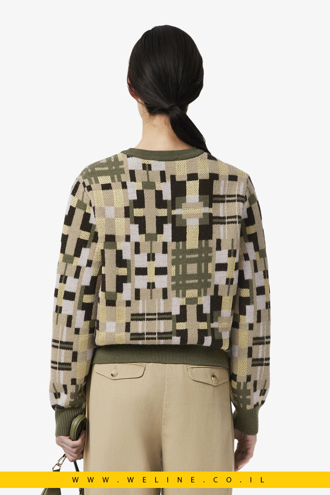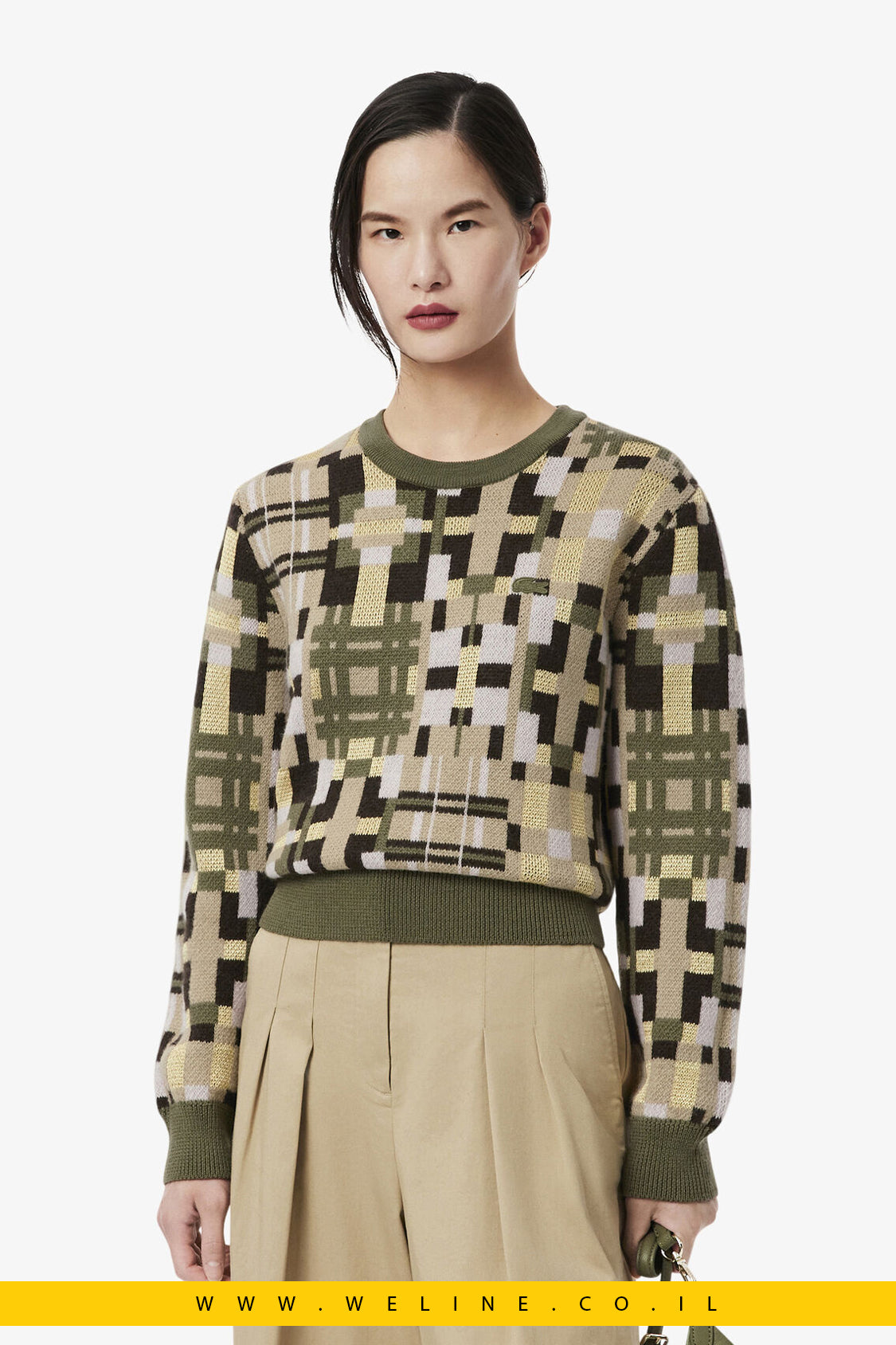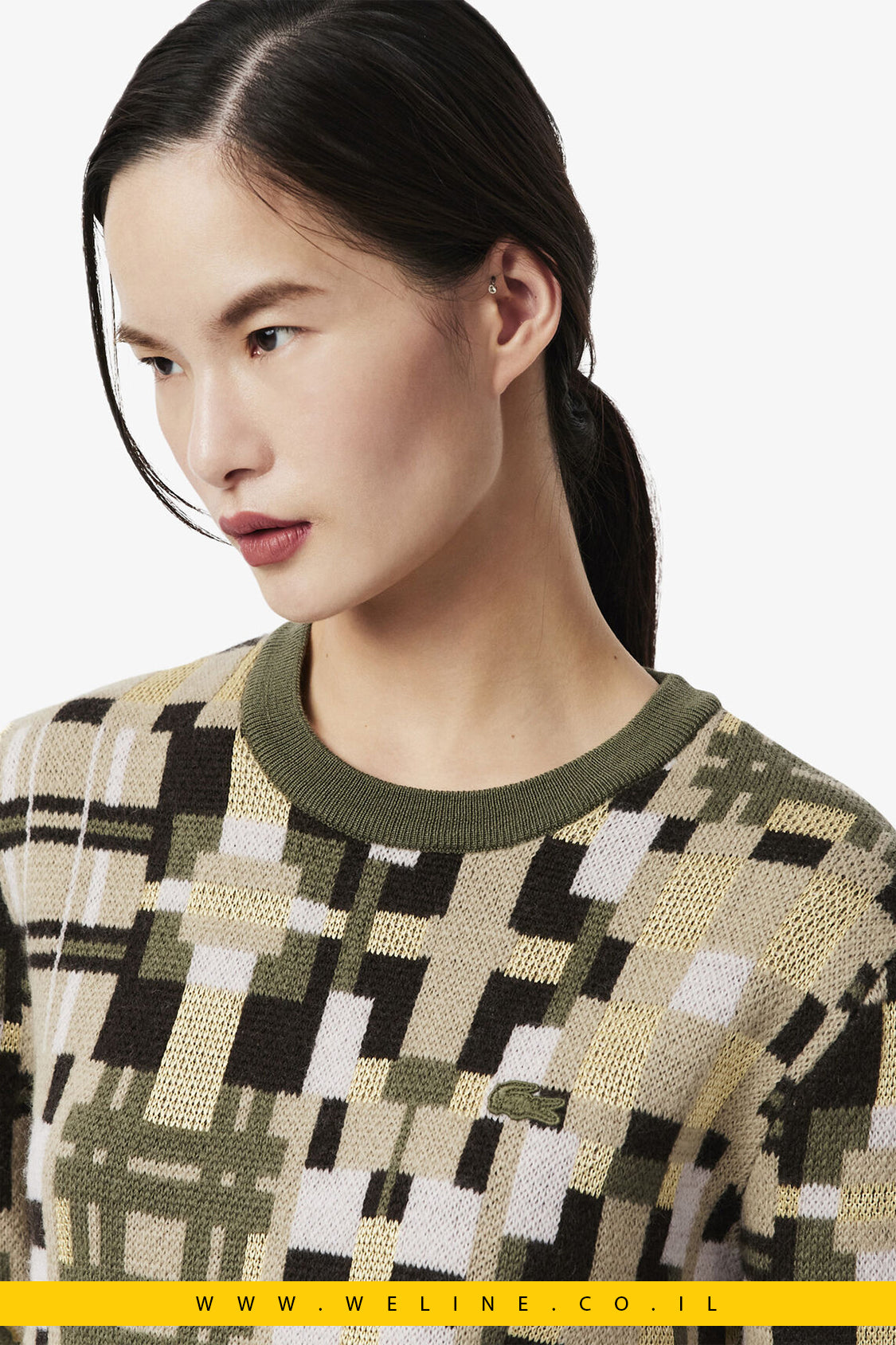 סוודר צמר ג’קארד גרפי עם צווארון עגול מבית Lacoste