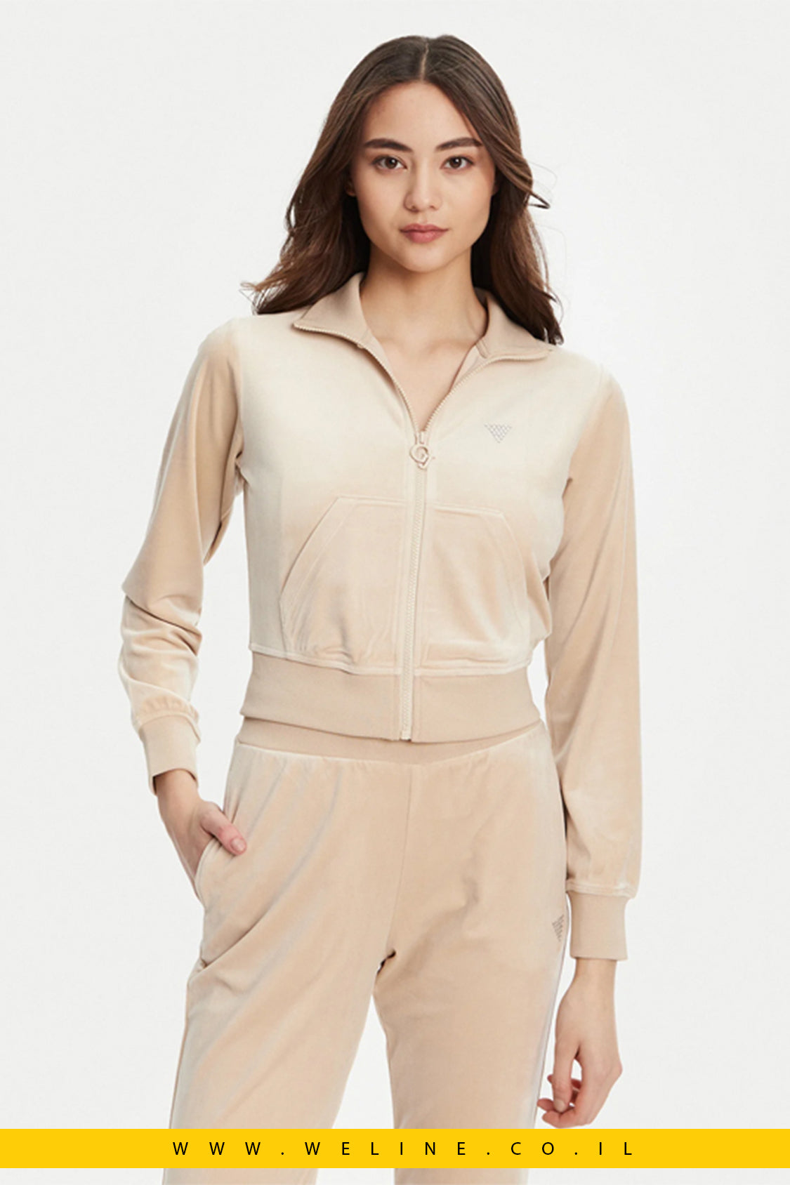 Guess Sweatshirt Women, סווטשירט קטיפה לנשים, Guess Velour Jacket, סווטשירט חום לנשים, סווטשירט יוקרתי Guess
