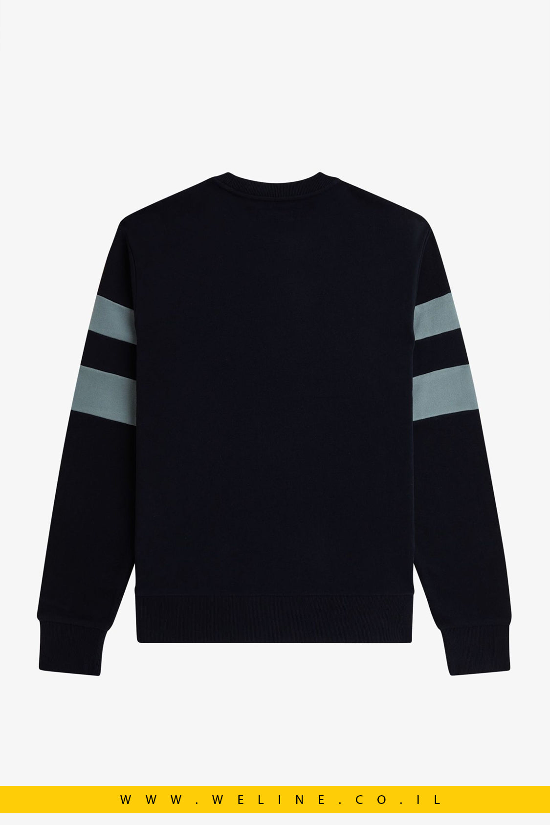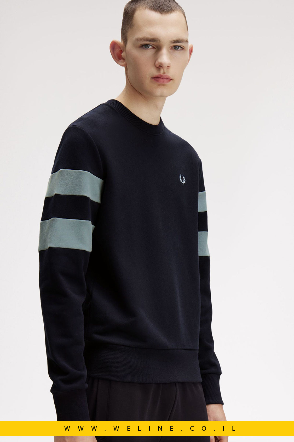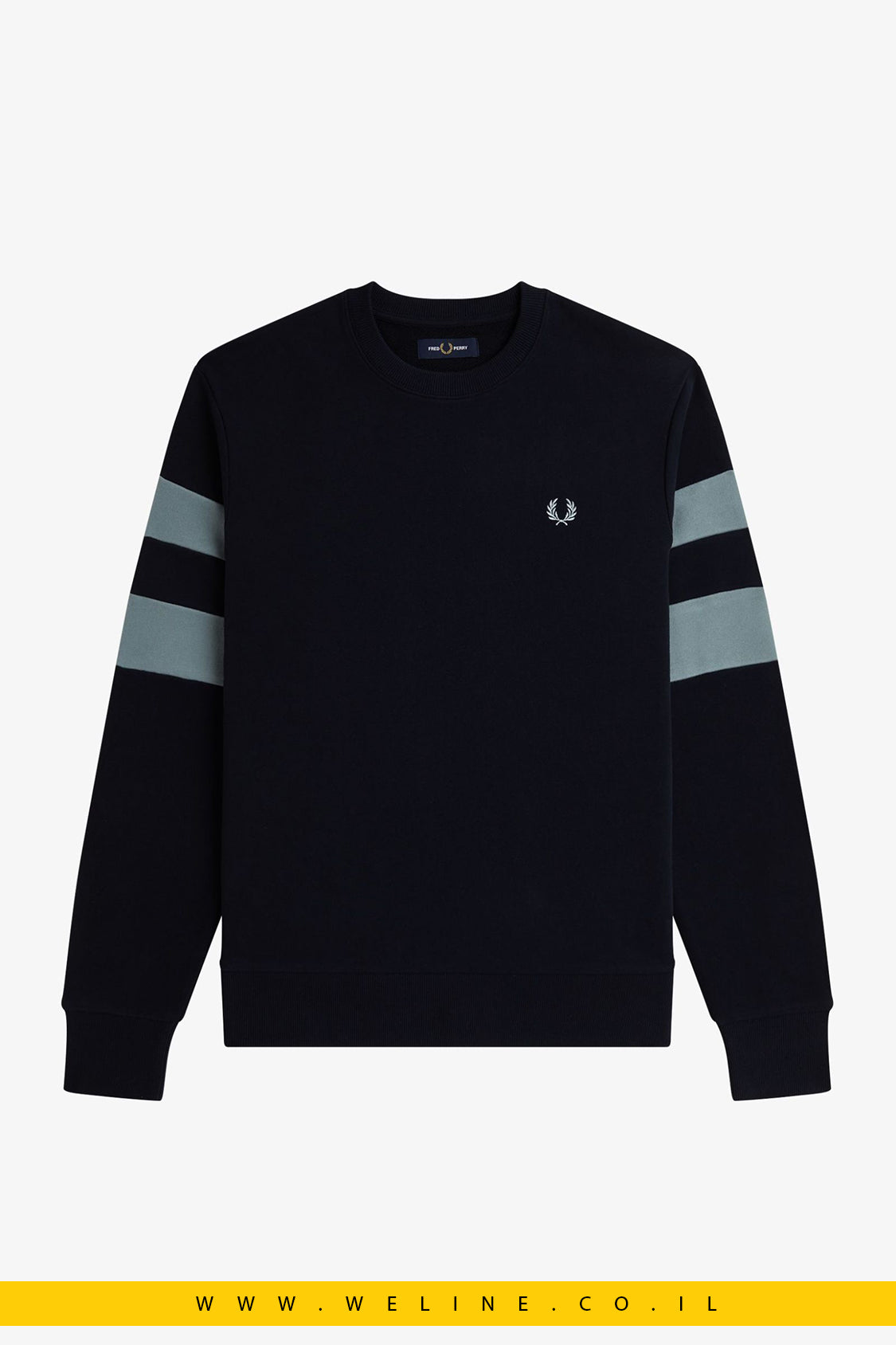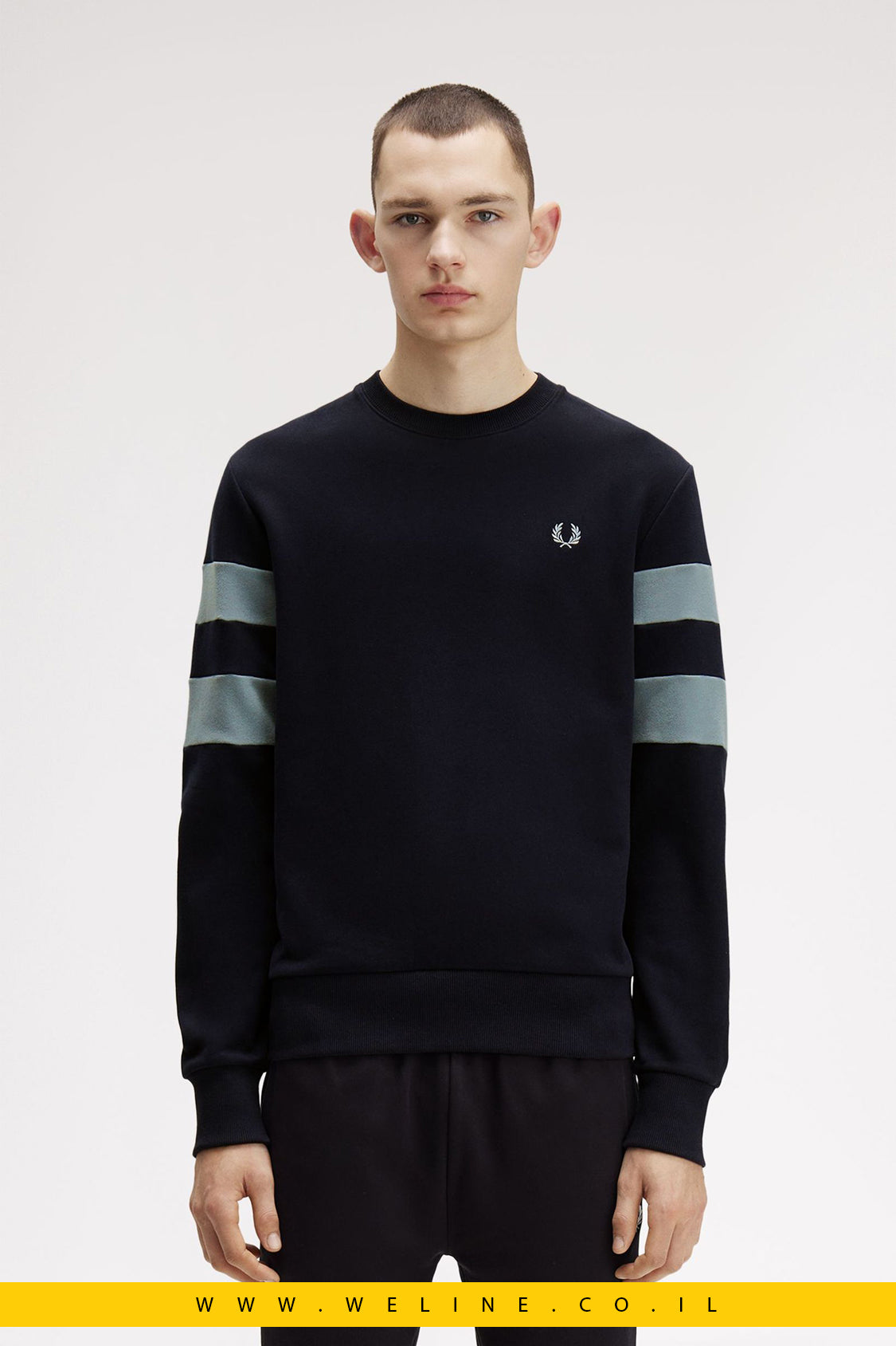 סווטשירט גברים, סווטשירט כחול, tipped sleeve sweatshirt, סווטשירט כותנה, loopback cotton, סווטשירט אופנתי גברים, Fred Perry style