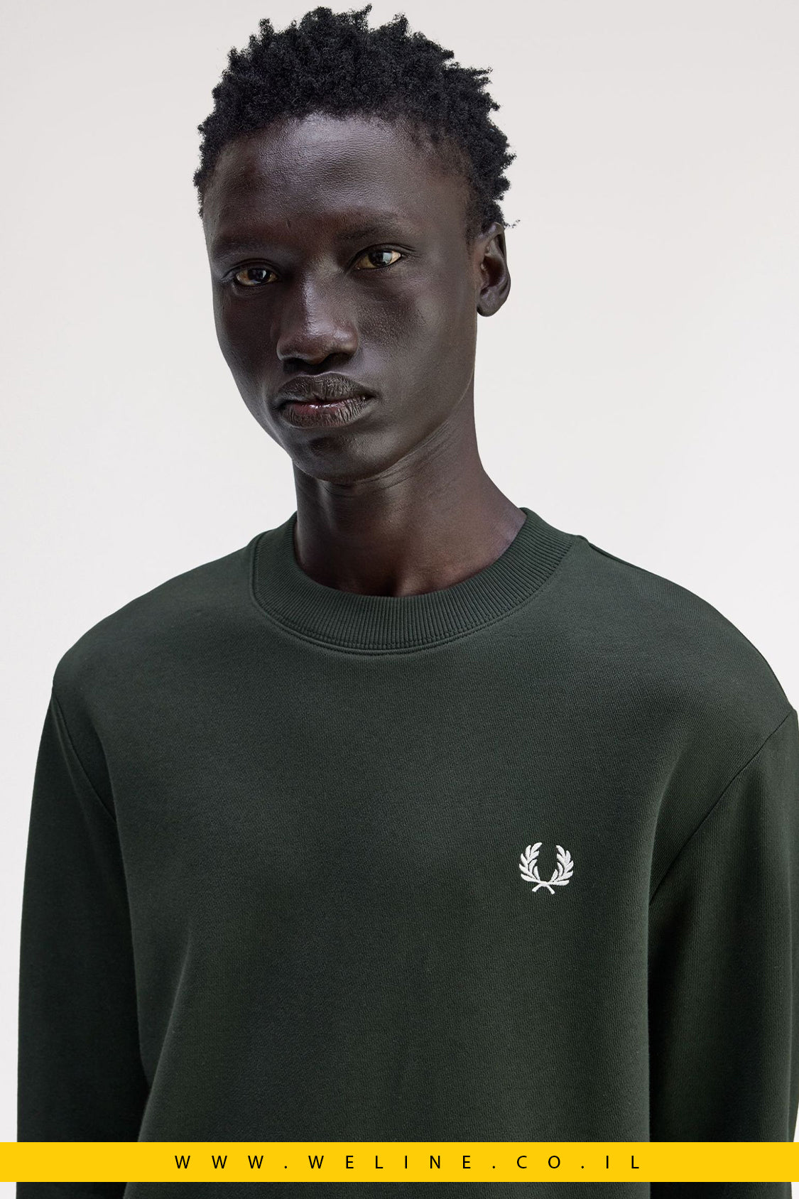 Fred Perry Crew Neck Sweatshirt • סווטשירט לגברים • סווטשירט כותנה 100% • Night Green • Laurel Wreath Fred Perry
