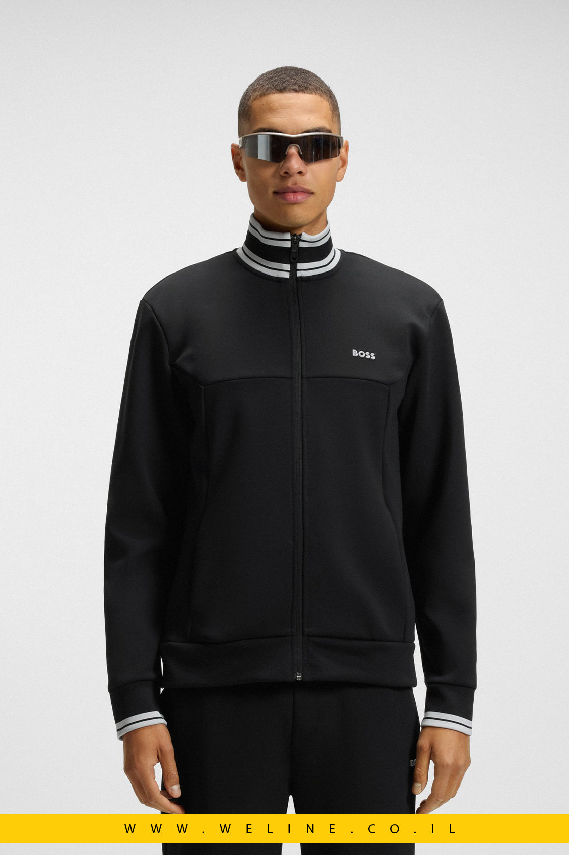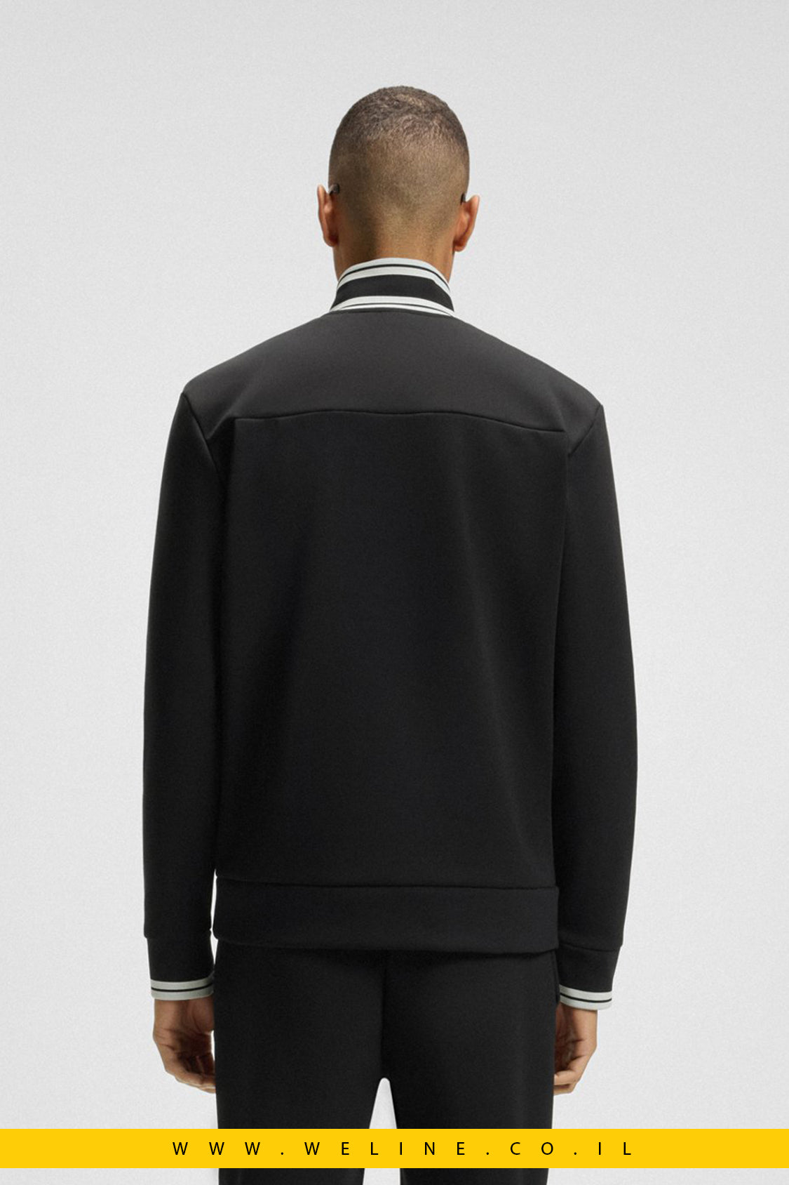 סווטשירט רוכסן מכותנה משולבת עם פסי פסים – BOSS (שחור)