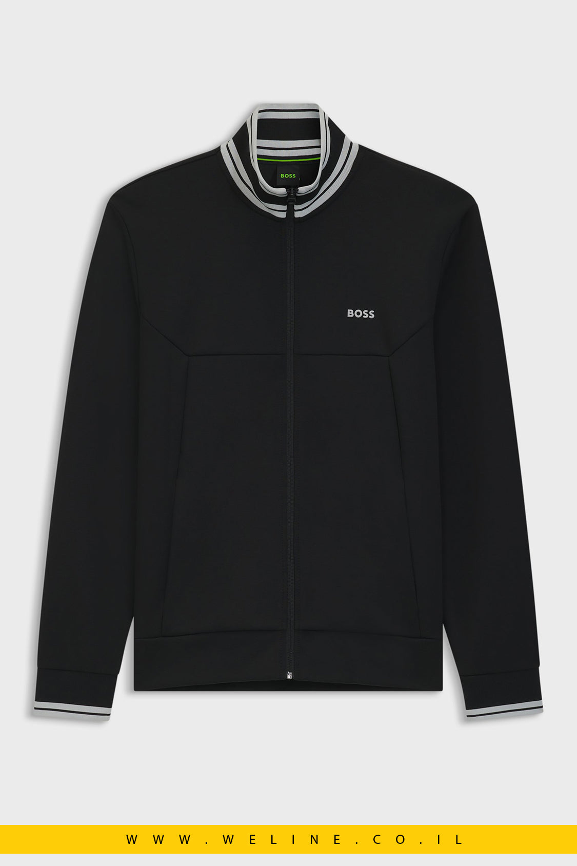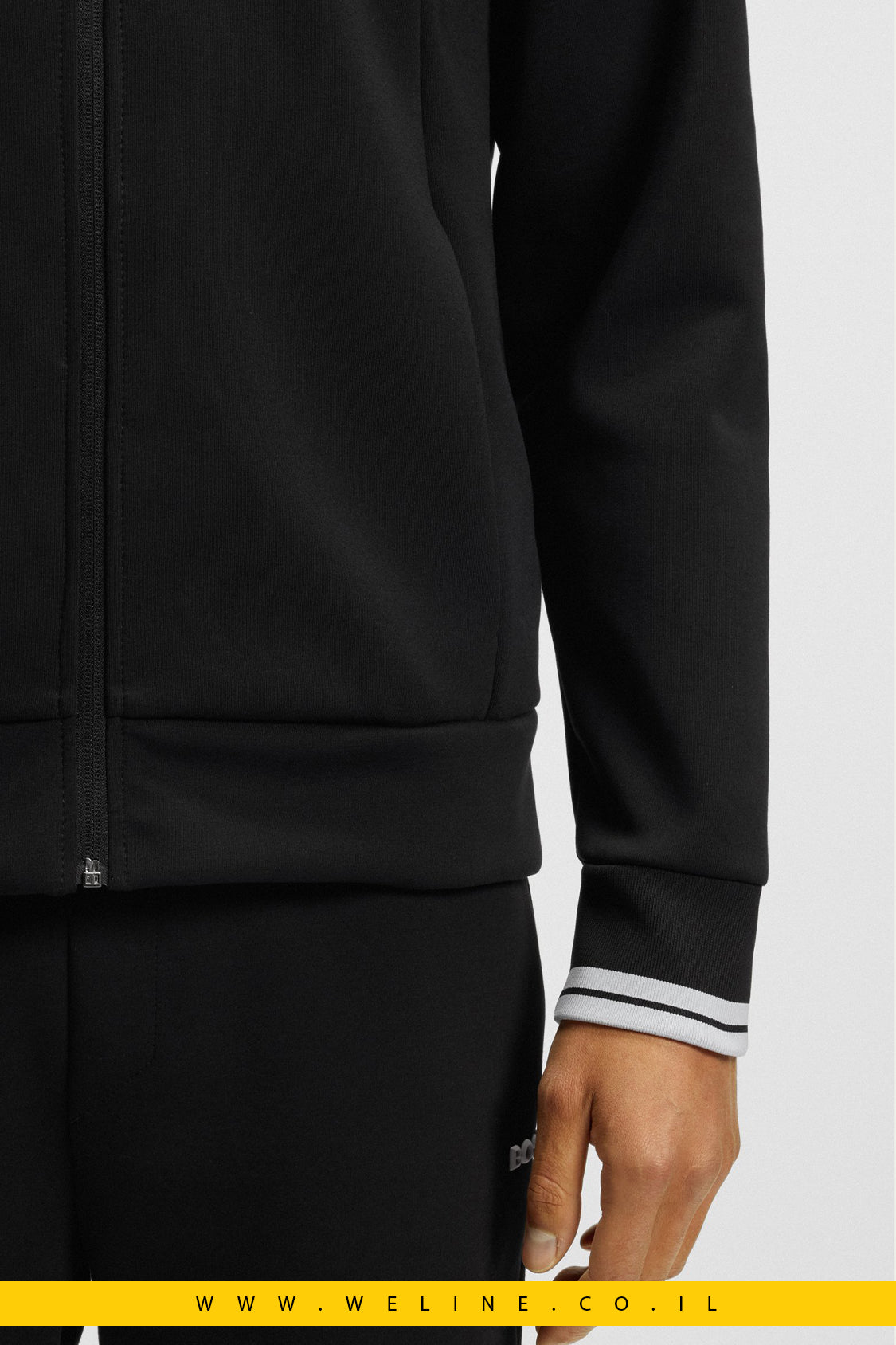 BOSS Zip-Up Sweatshirt • סווטשירט רוכסן לגברים • כותנה משולבת אלסטית • סווטשירט שחור BOSS • Regular Fit