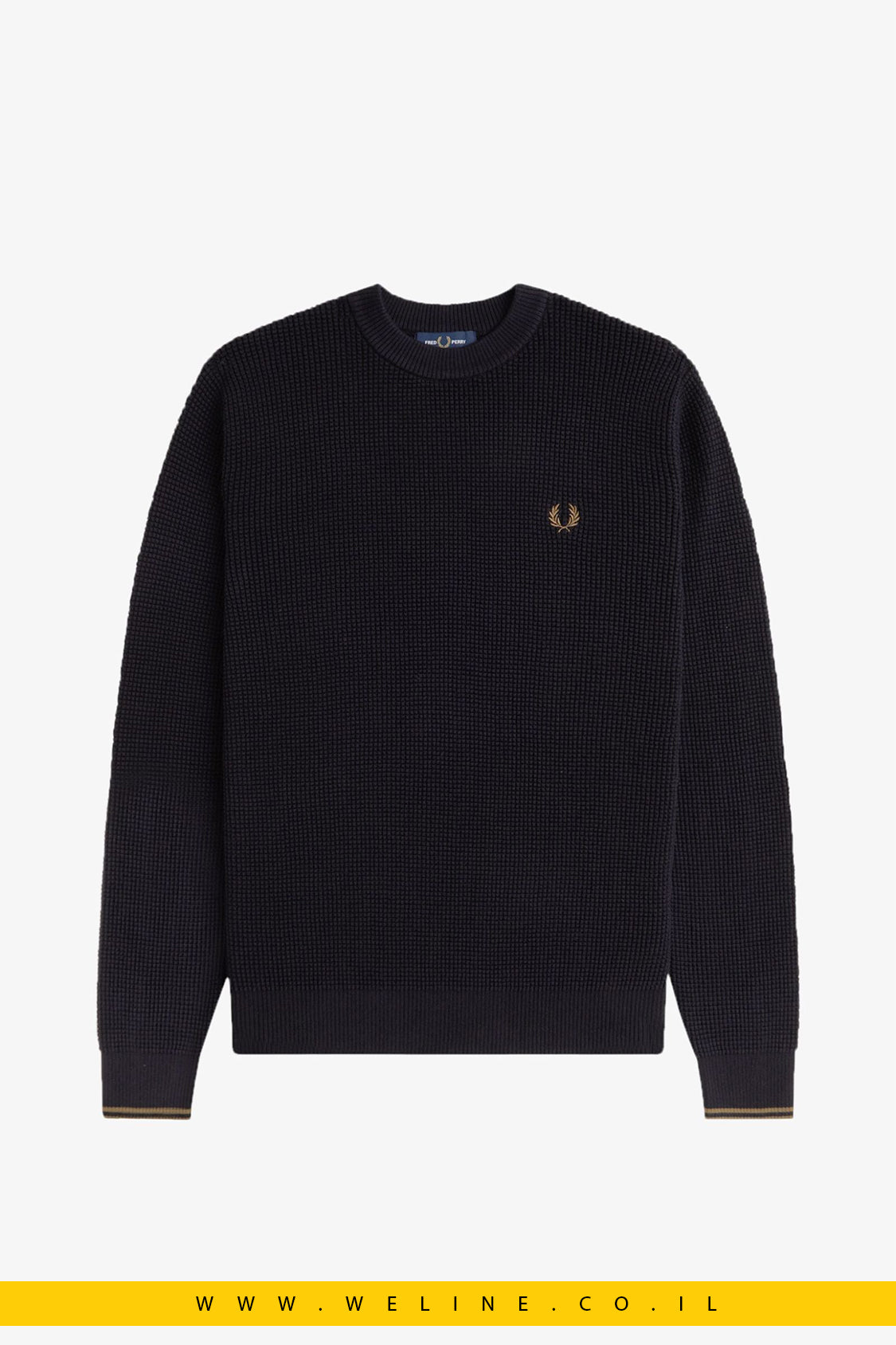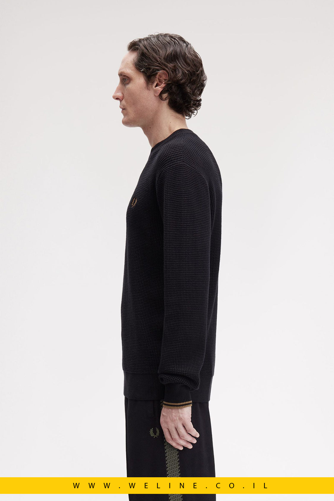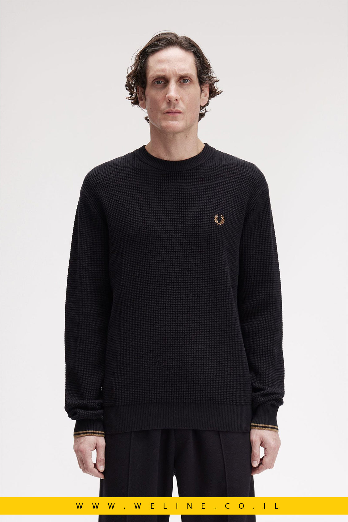 סריג וואפל לגברים – צווארון עגול, שחור