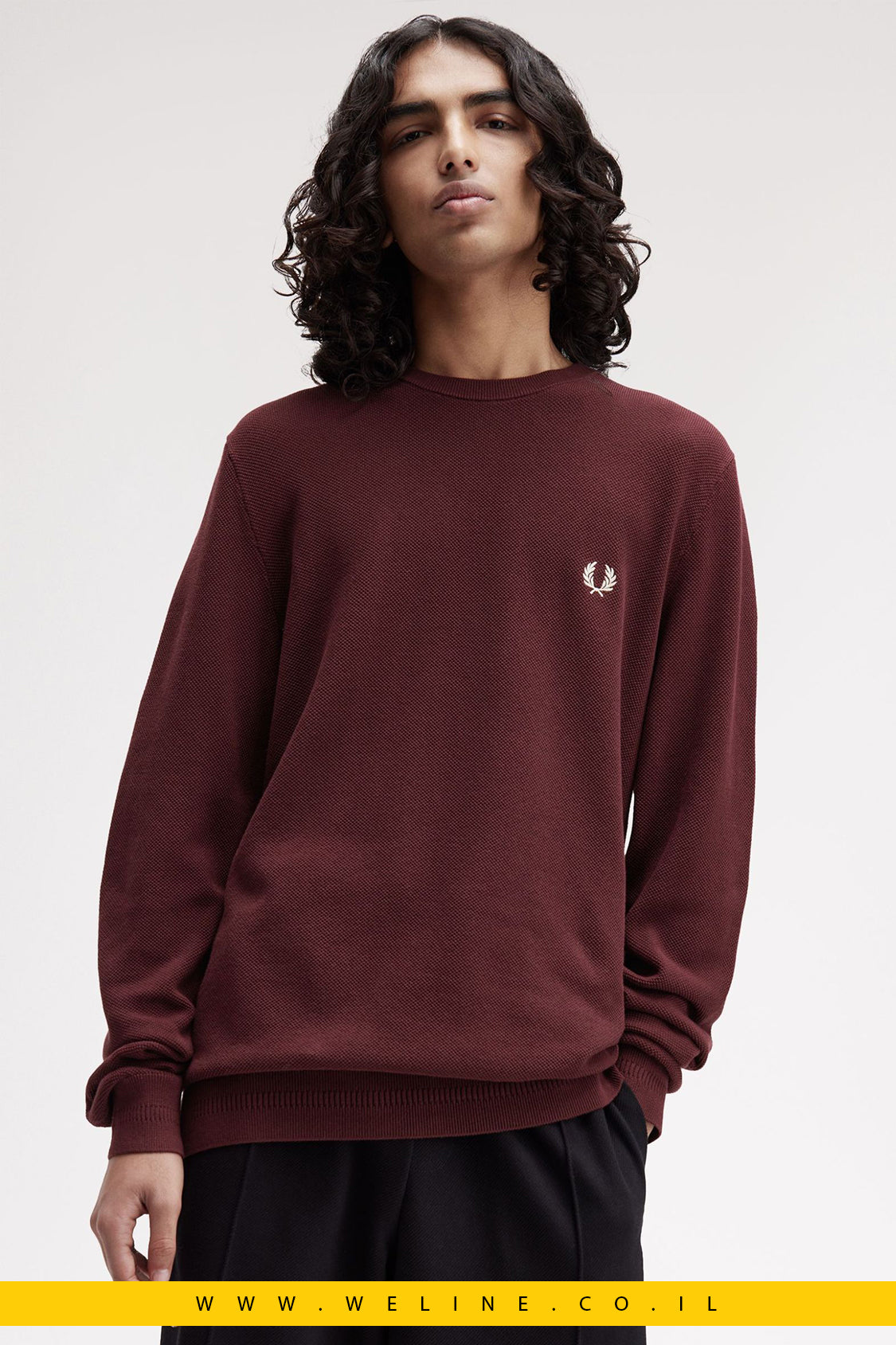 סריג כותנה בטקסטורת פיקה – Fred Perry Piqué Stitch Jumper (Oxblood)