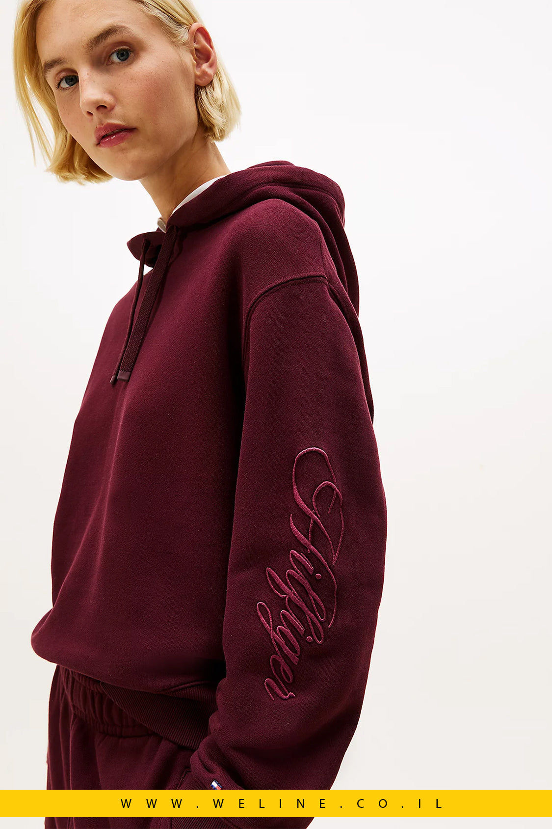 Tommy Hilfiger נשים, קפוצ'ון כותנה, קפוצ'ון עם רקמת לוגו, סווטשירט נשים אופנתי, Tommy Hilfiger Hoodie, קפוצ'ון יומיומי לנשים.