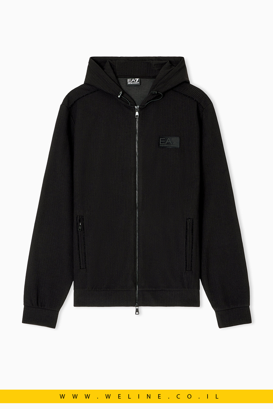 EA7 Emporio Armani Hoodie, קפוצ'ון רוכסן גברים, Lux Identity EA7, Armani Israel, קפוצ'ון אלגנטי, Viscose Blend Hoodie, אופנה יוקרתית לגברים