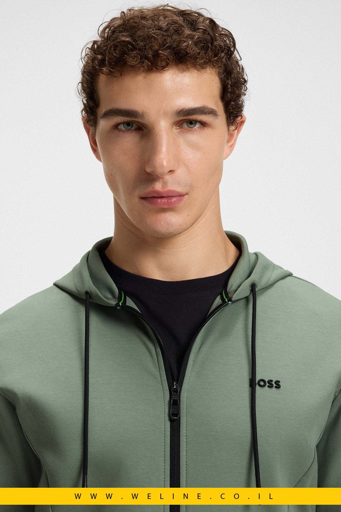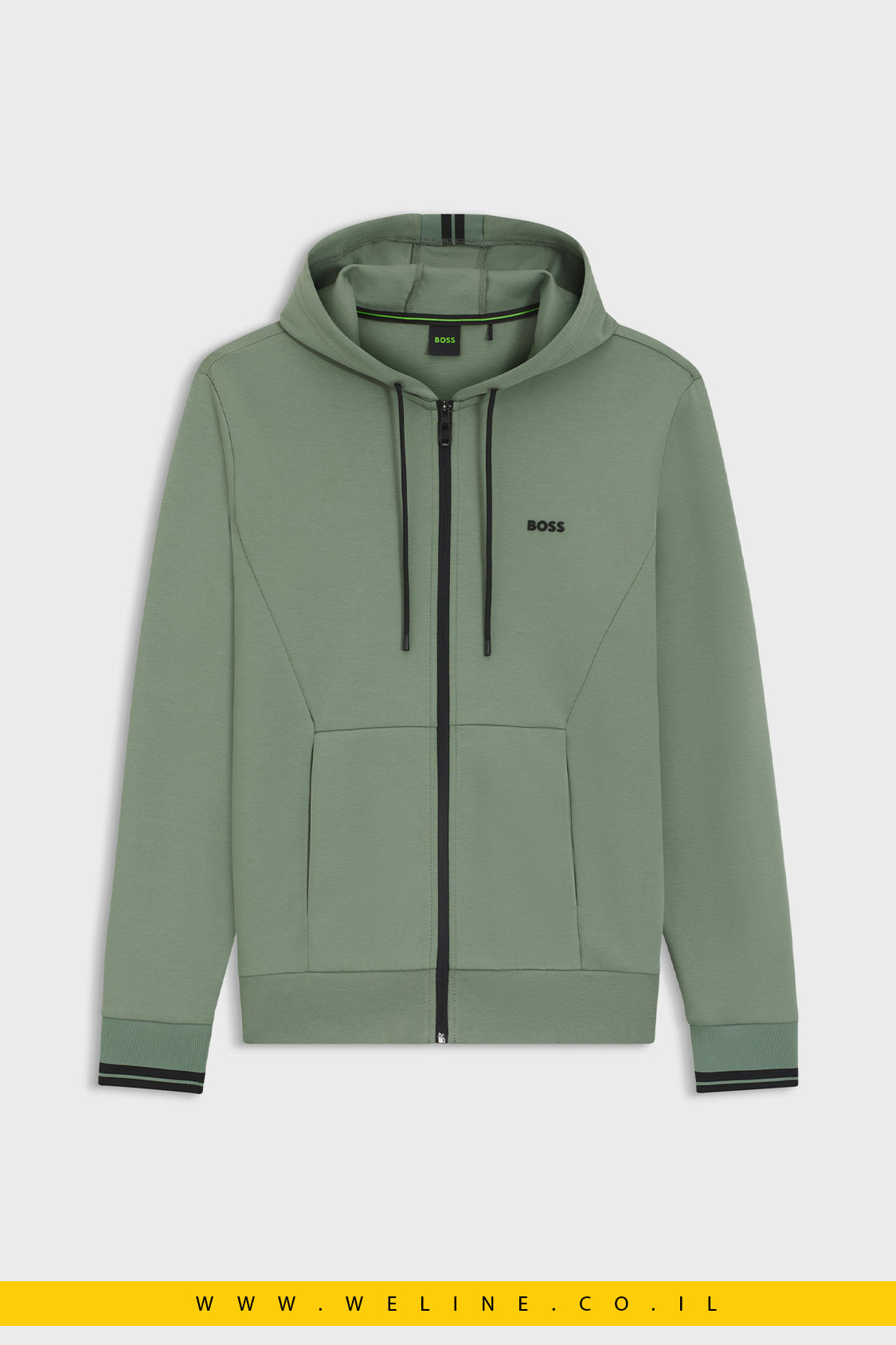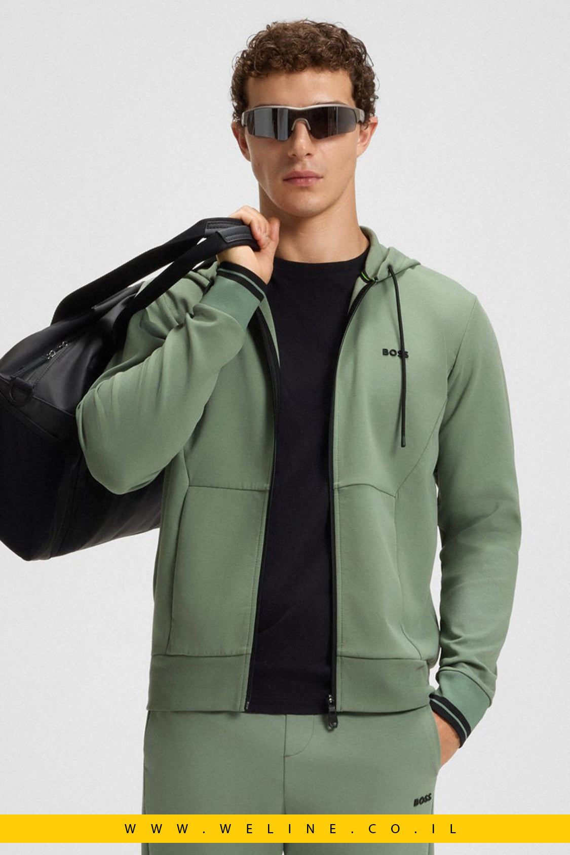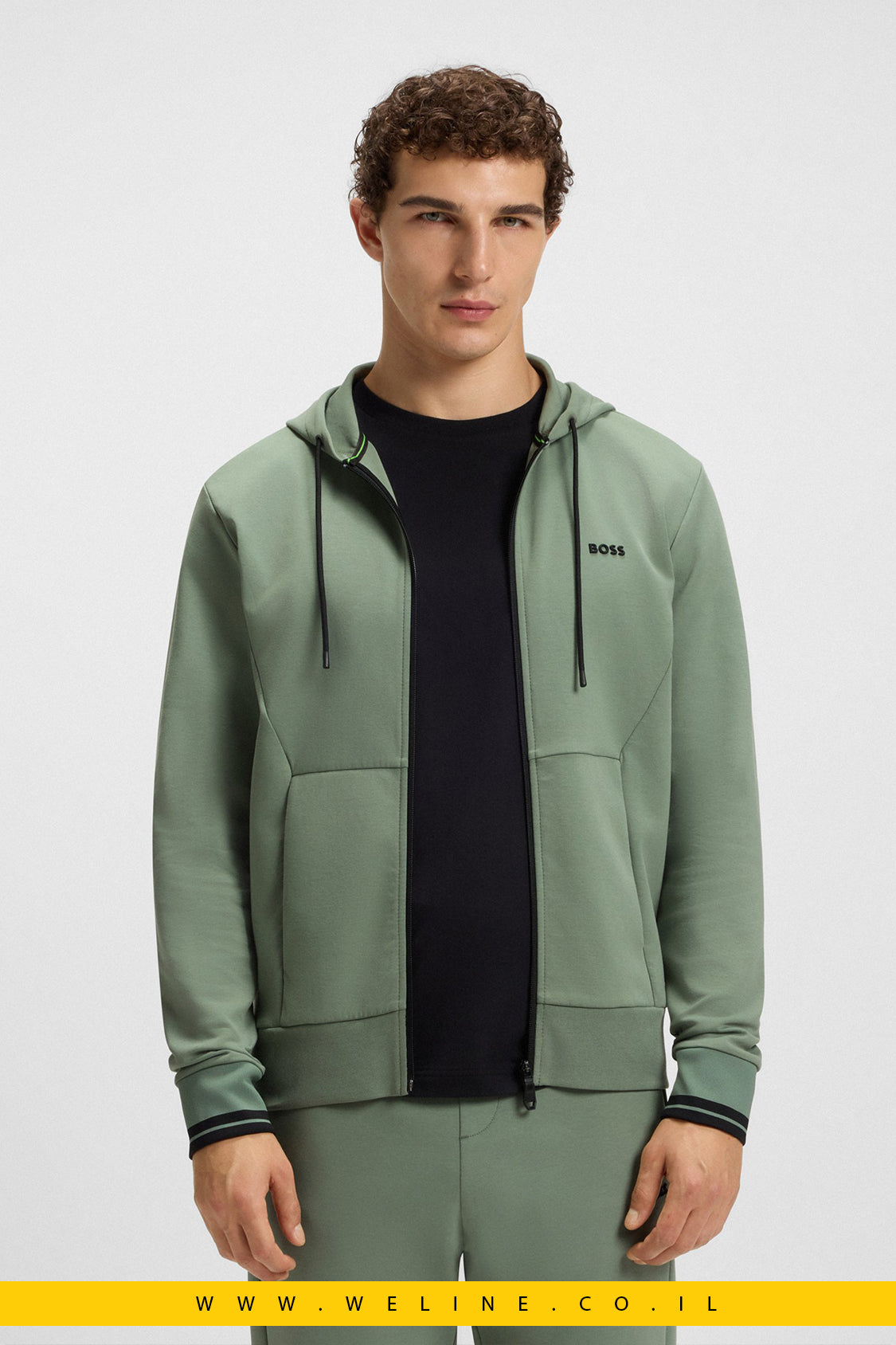 BOSS Zip Hoodie, קפוצ'ון רוכסן גברים, BOSS Israel, Cotton Blend Hoodie, קפוצ'ון יוקרתי לגברים, Stripe Details Hoodie, אופנת גברים פרימיום