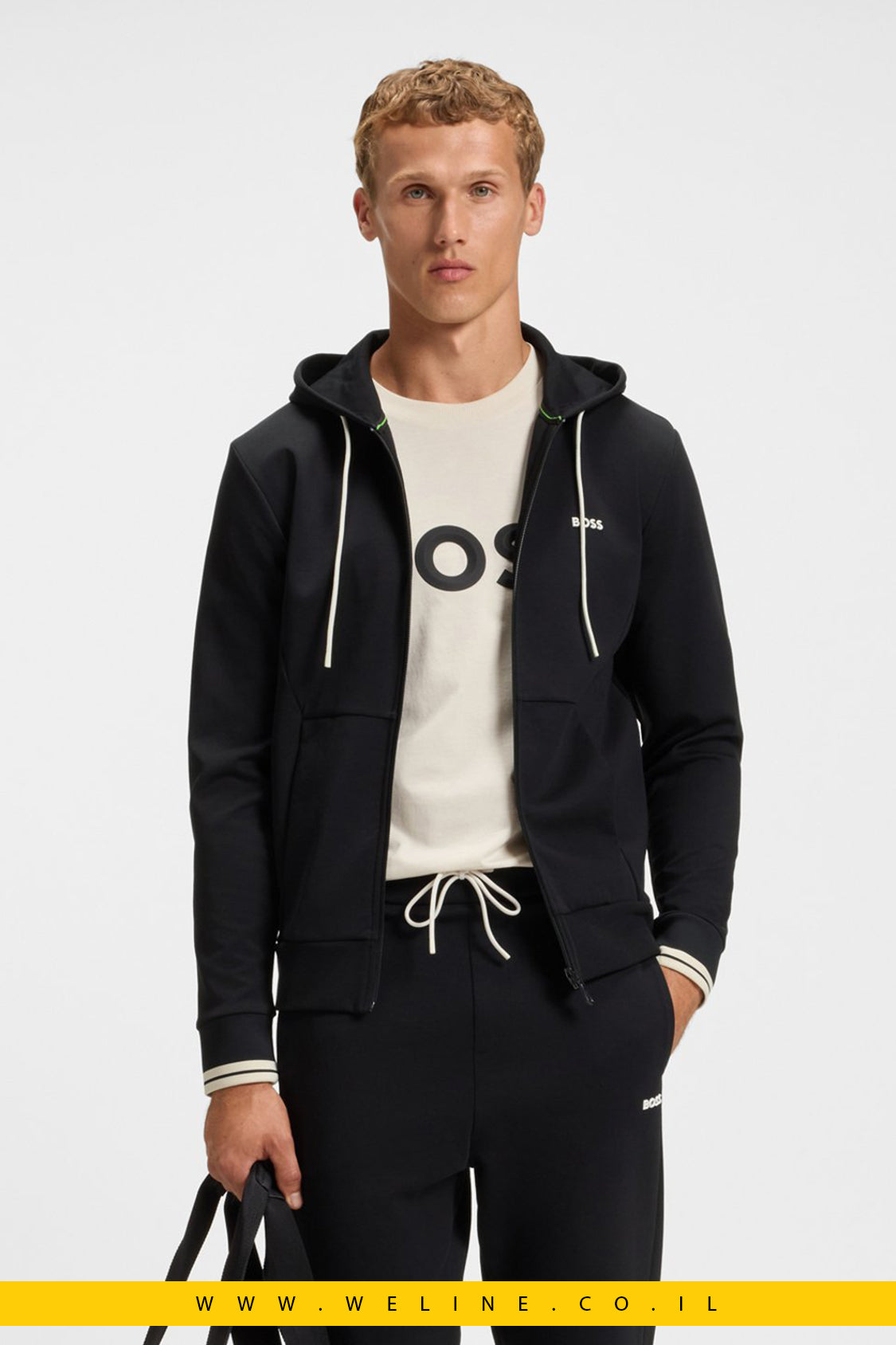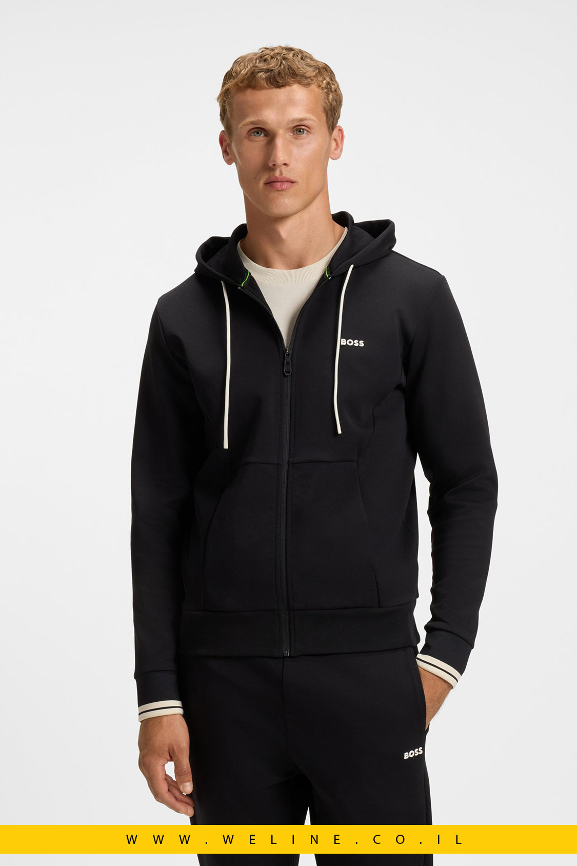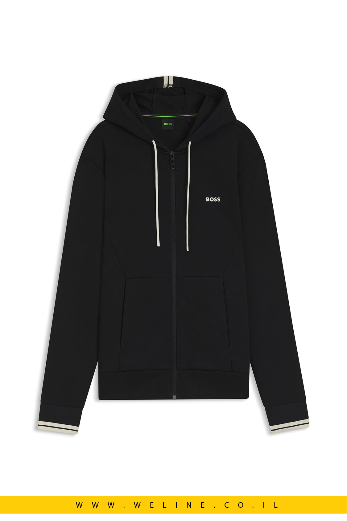 BOSS Zip Hoodie, קפוצ'ון רוכסן גברים, Stripe Detail Hoodie, BOSS Israel, קפוצ'ון כותנה גברים, אופנת גברים יוקרתית, סווטשירט פרימיום