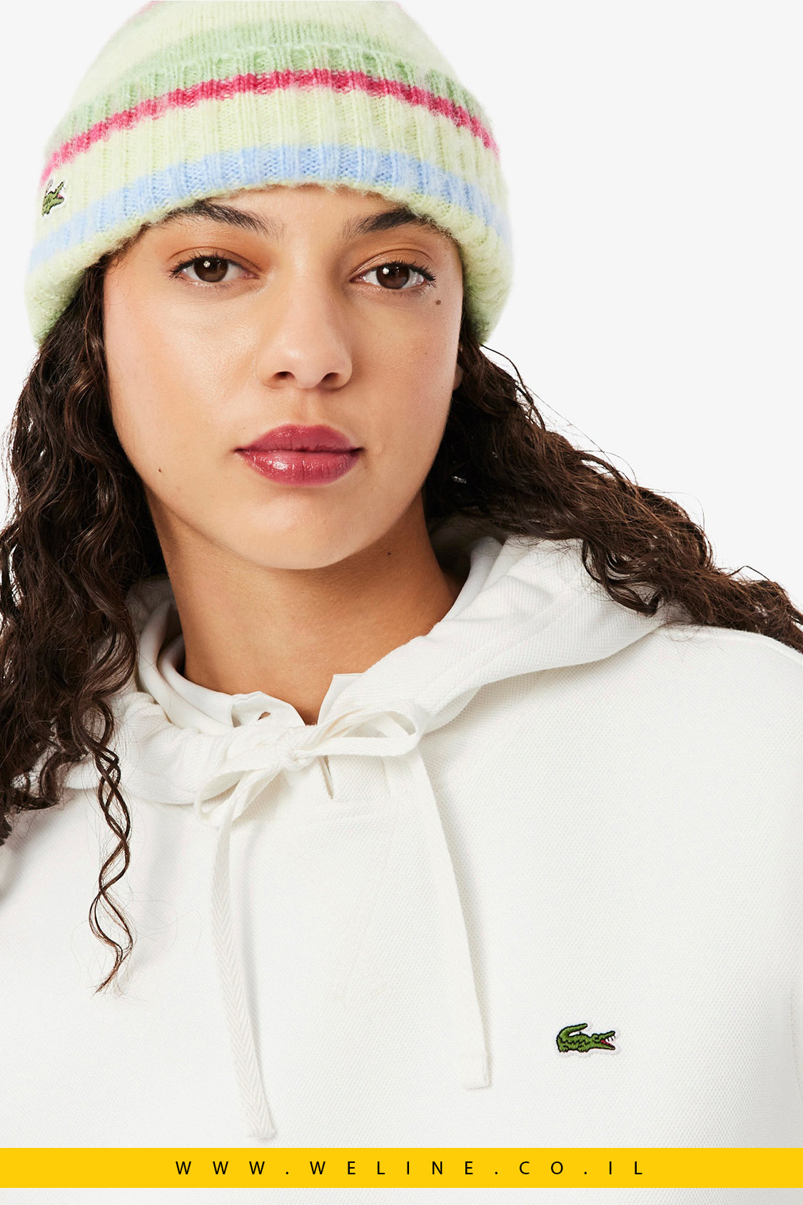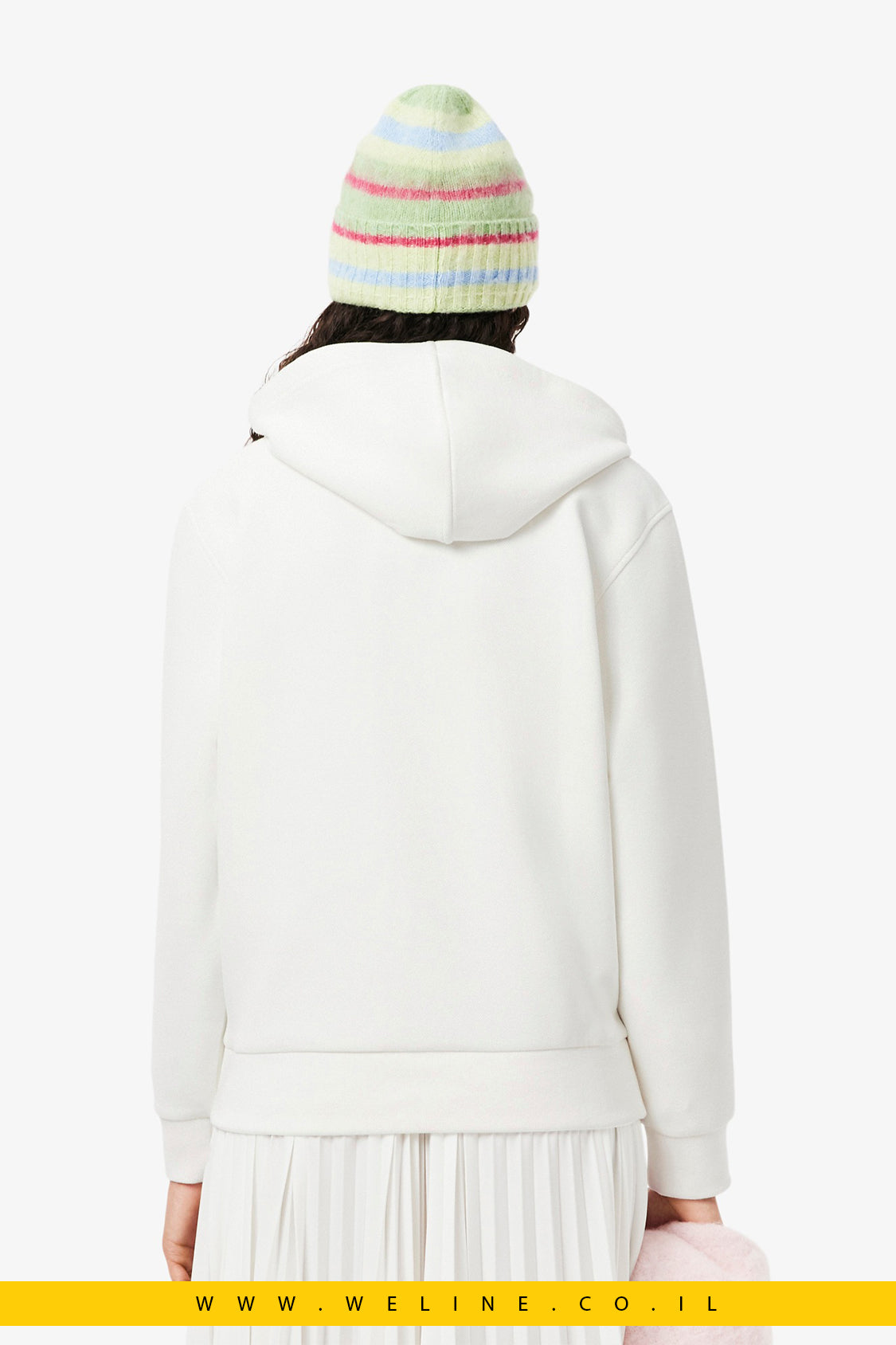 Lacoste נשים, קפוצ’ון לבן לנשים, קפוצ’ון לאקוסט, סווטשירט יוקרתי לנשים, קפוצ’ון Piqué, לאקוסט ספורט אלגנט