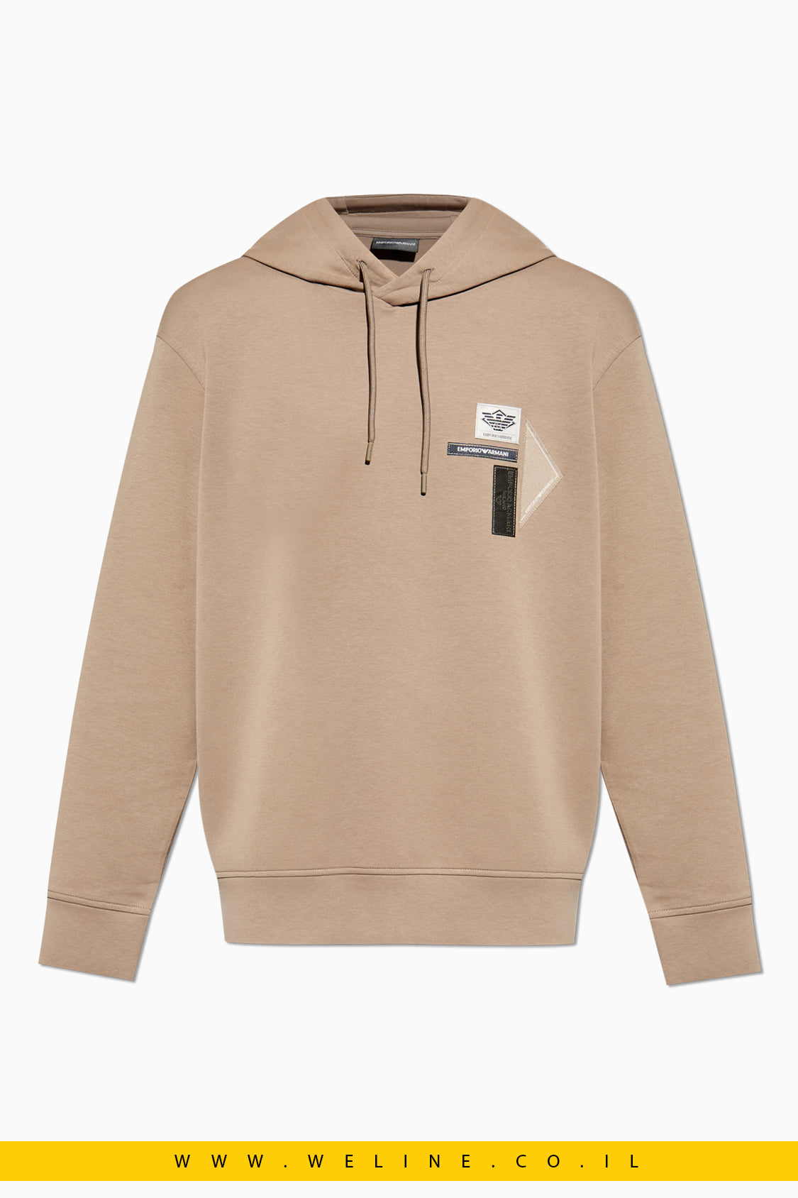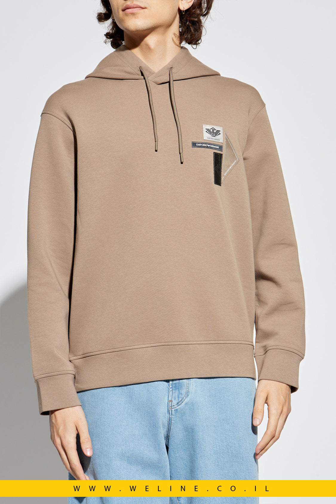 Emporio Armani גברים, קפוצ׳ון ארמני, סווטשירט יוקרתי, Armani Hoodie, בגדי מעצבים לגברים, Emporio Armani Israel, סווטשירט בז’ לגברים