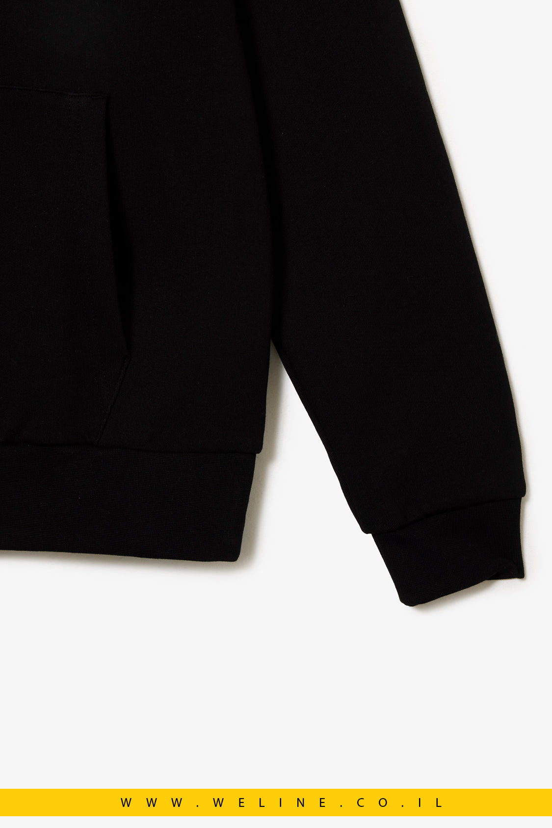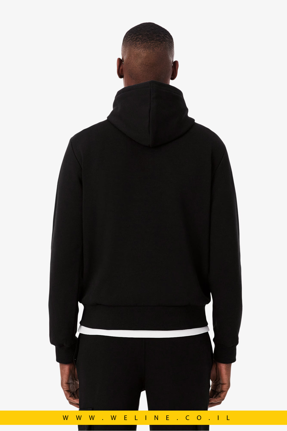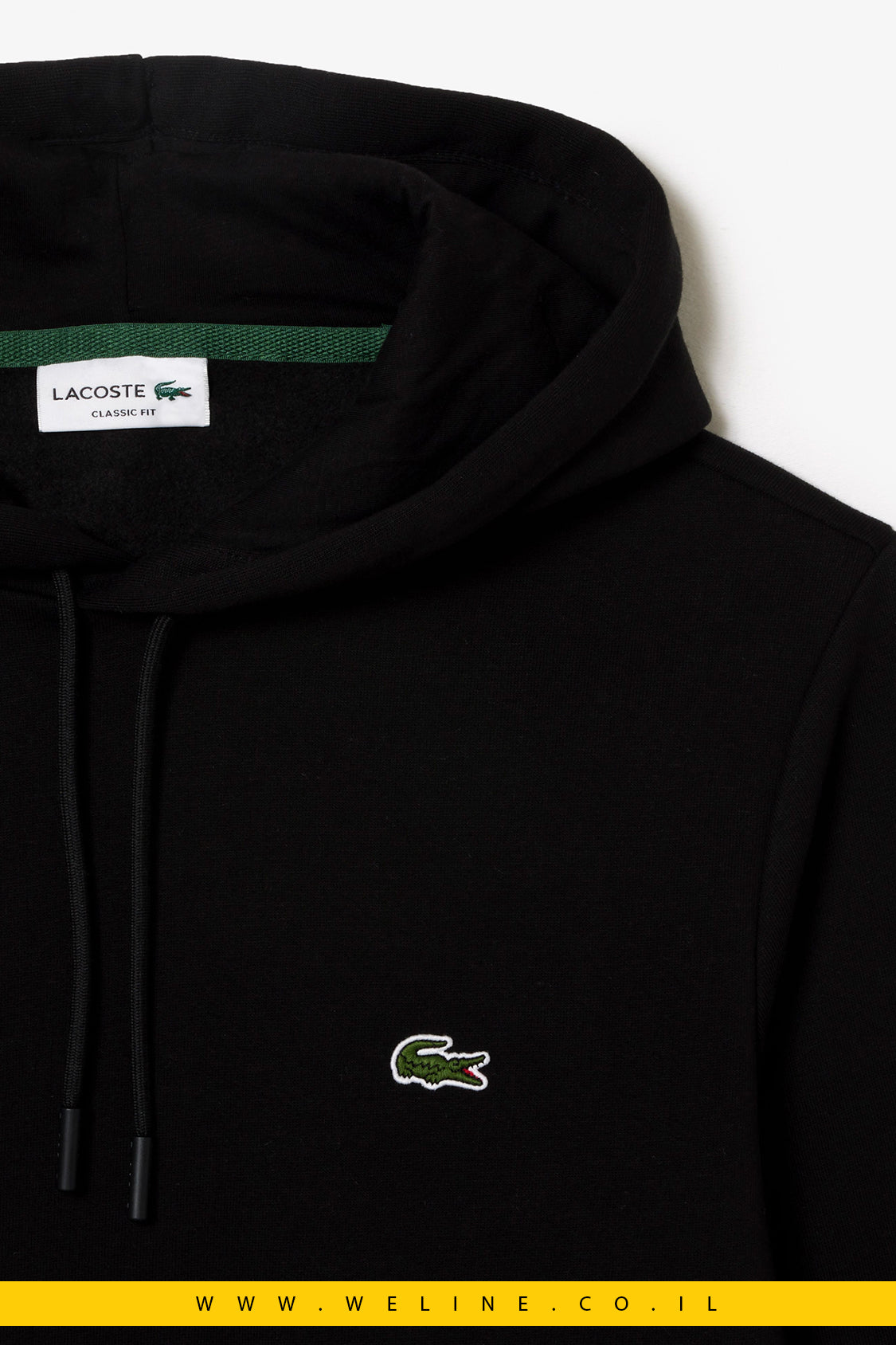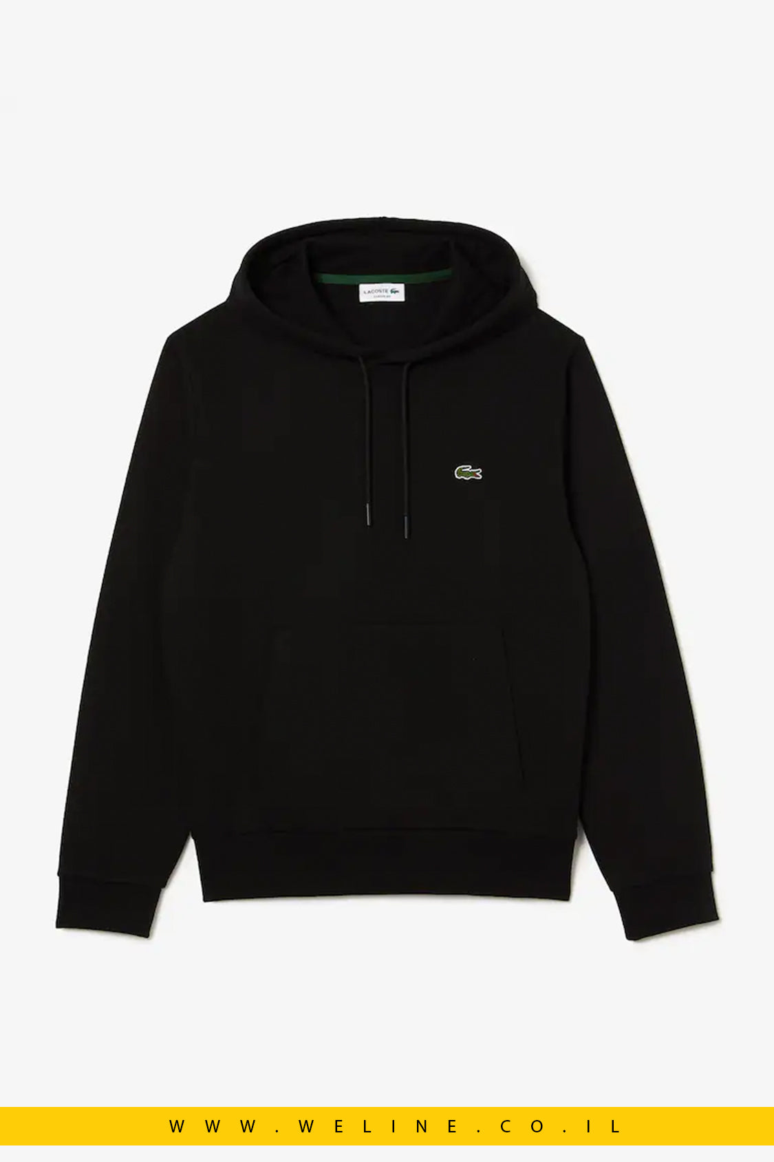קפוצ’ון פליס Lacoste לגברים • דגם SH9623-00 • Classic Fit • כותנה אורגנית • צבע שחור • קפוצ’ון מרופד וכיס קנגורו