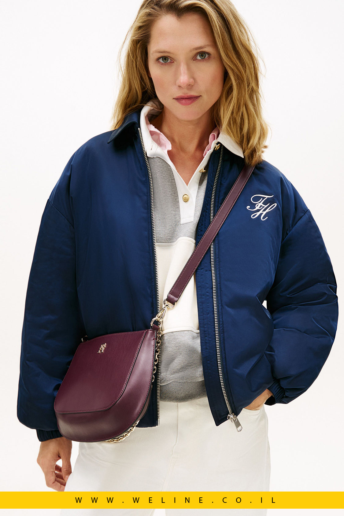 גימור חלק, סגירת רוכסן, ותאי אחסון פרקטיים – יחד עם לוגו TH Monogram שמעניק טאץ’ ממותג ויוקרתי.