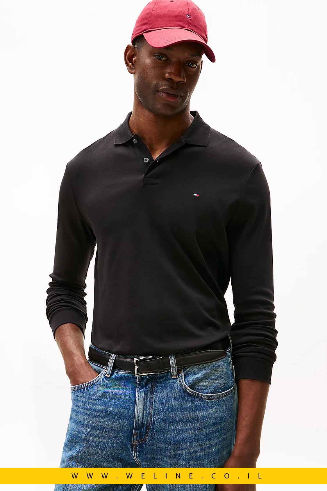 Tommy Hilfiger Regular Fit Long Sleeve Polo Shirt – חולצת פולו שרוול ארוך לגברים בצבע שחור